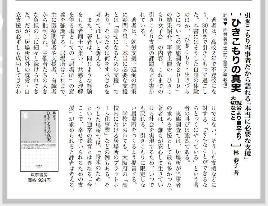 書評林恭子『ひきこもりの真実―就労より自立より大切なこと』、ちくま新書、2021年12月